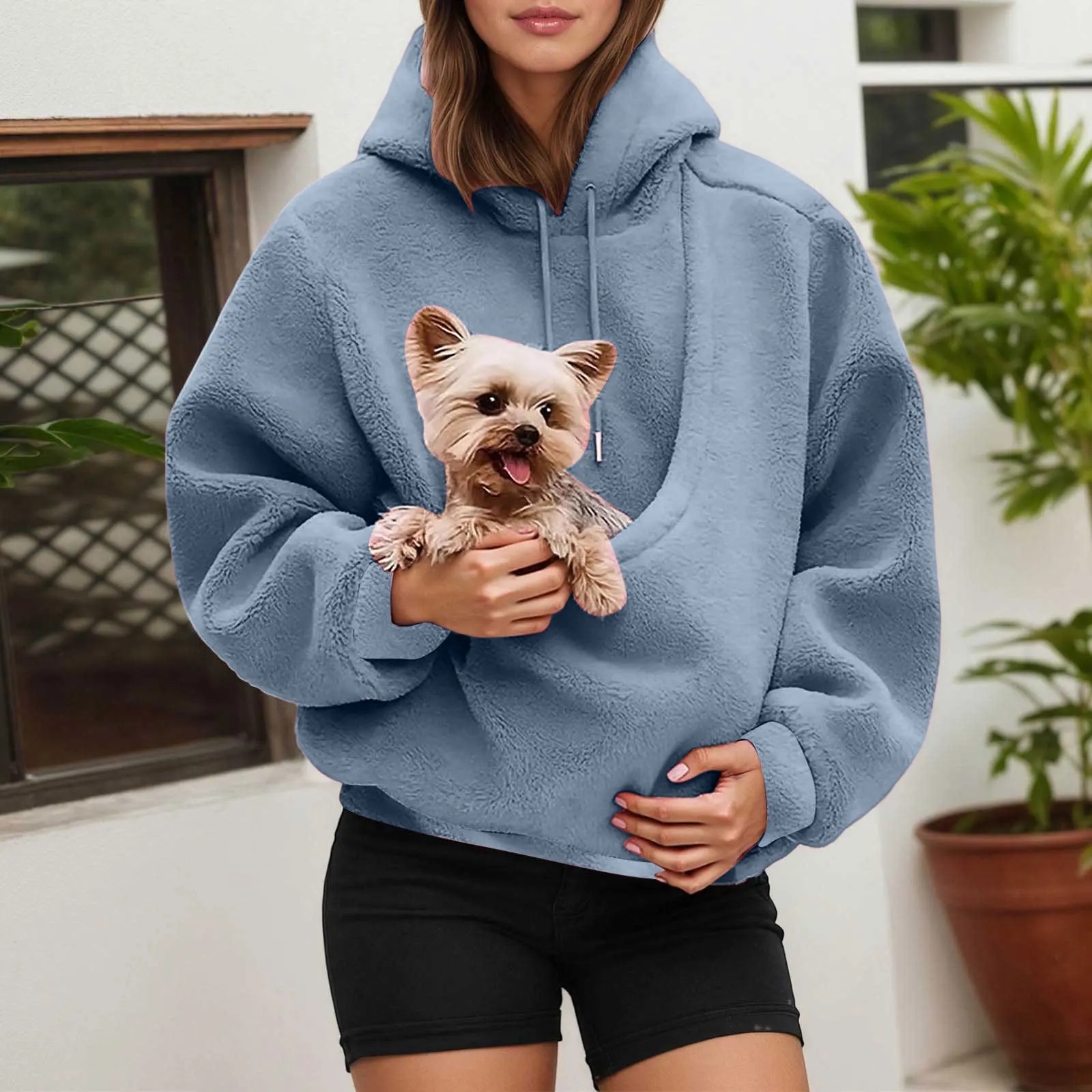 [Fabric] This hoodie is made from a soft cotton-polyester blend fleece that's comfortable against your skin and gentle pet hair. The , breathable material for both owner and pet during close .